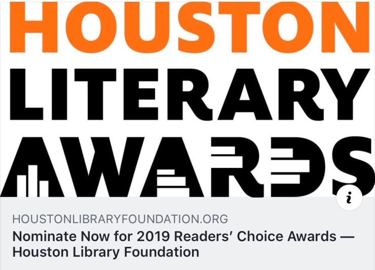 Please use this link for voting: https://www.houstonlibraryfoundation.org/nominate-2019-readers-choice-awards